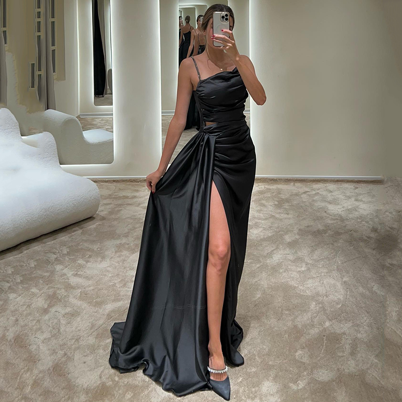 Mermaid Prom Dresses High Split Sleeveless Evening Dress Formal Saudi Arabia Cocktail Party Prom Gowns