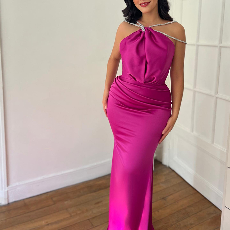Formal Mermaid Prom Evening Dresses Halter Neck Beading Party Dress Saudi Arabia Side Slit Floor Length Gown